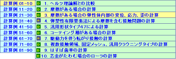 計算例2のデータについて弾性体内部の変位、応力、歪を計算します。上部弾性体について、