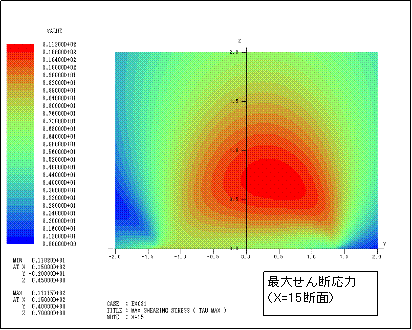 X=15 断面とY=0 断面の変位、応力、歪を計算します。