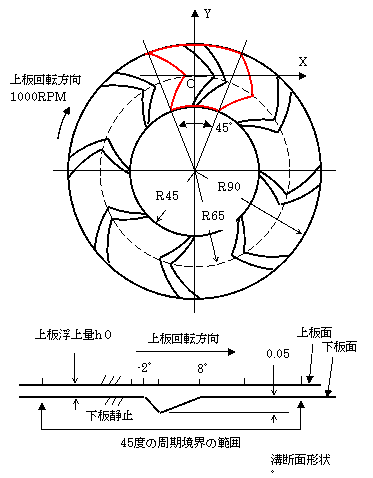 | 平板滑り軸受の計算が可能です。2枚の回転する円盤の間を流体で満たし、どちらかの円盤 | ||||||||||||||||||||||||||||||||||||