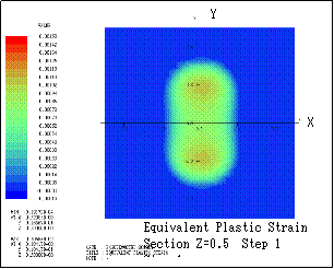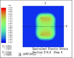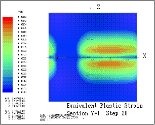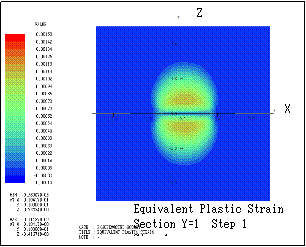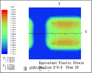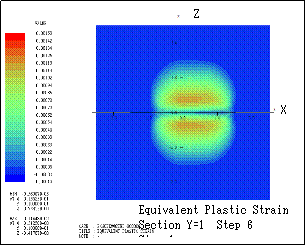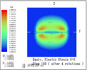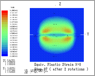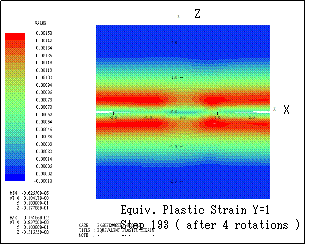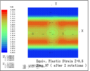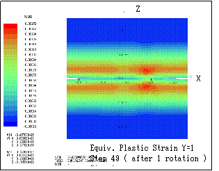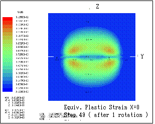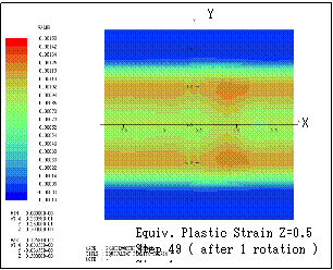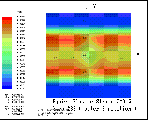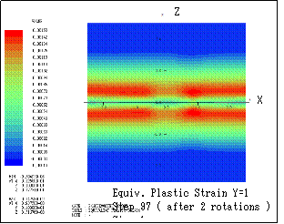ƒeƒLƒXƒg ƒ{ƒbƒNƒX: Here the transition of equivalent plastic strain (section Y=1) is shown. Step n indicates that the bodies are sequentially rotated in X