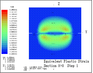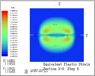ƒeƒLƒXƒg ƒ{ƒbƒNƒX: Here the transition of equivalent plastic strain (section X=0) is shown. Step n indicates that the bodies are sequentially rotated in X
